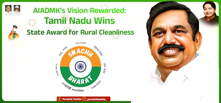 In a proud moment for Tamil Nadu, the state has received a prestigious State Award for rural cleanliness under the Swachh Bharat Mission, recognizing the government’s relentless efforts to improve sanitation and hygiene in villages. The award is a testament to the effective policies implemented under the leadership inspired by the AIADMK’s developmental vision, which has consistently prioritized rural welfare and cleanliness. From constructing household toilets to promoting waste segregation and community awareness programs, these initiatives have transformed rural areas into cleaner, healthier environments. The success reflects one of the key Tamilnadu AIADMK achievements, emphasizing the party’s commitment to improving living standards for every citizen, especially those in underprivileged communities.