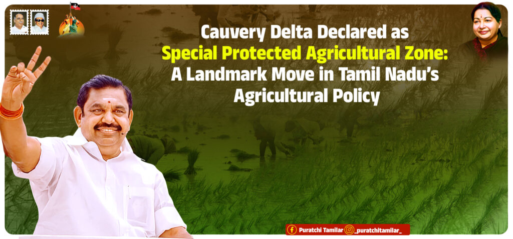 In conclusion, the announcement that the Cauvery Delta will be a Special Protected Agricultural Zone stands as a historic achievement in Tamil Nadu’s agricultural policy. Supported and implemented by the AIADMK, this initiative underlines the government’s unwavering dedication to farmers’ welfare and environmental conservation. The move not only strengthens Tamil Nadu’s agricultural backbone but also sets a model for other states to follow in protecting their farming communities and natural resources.